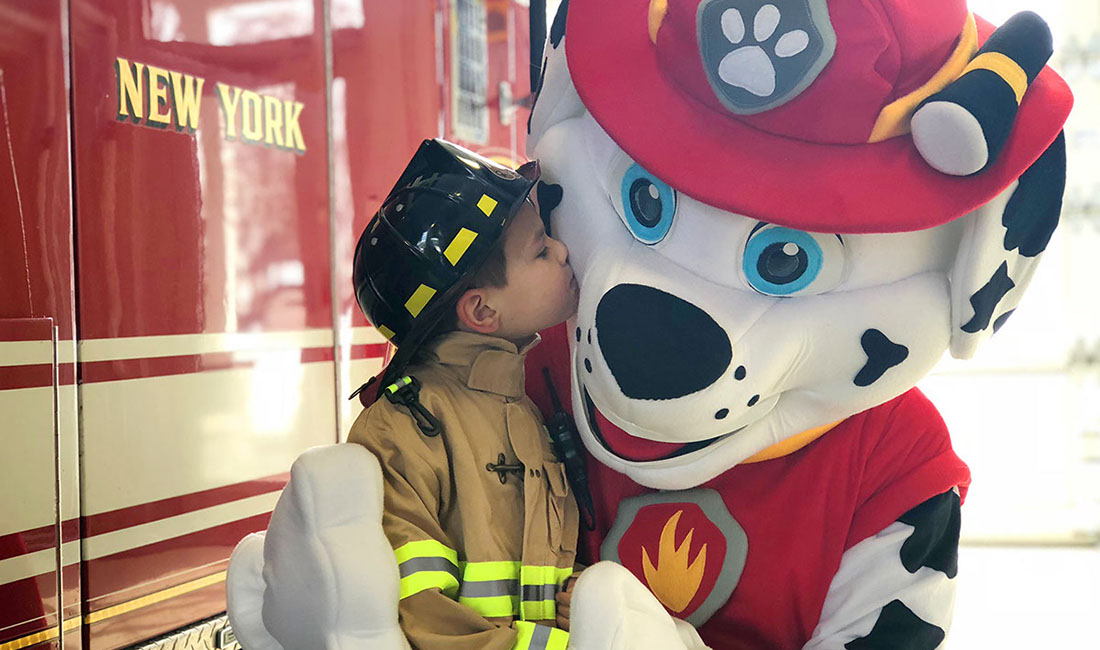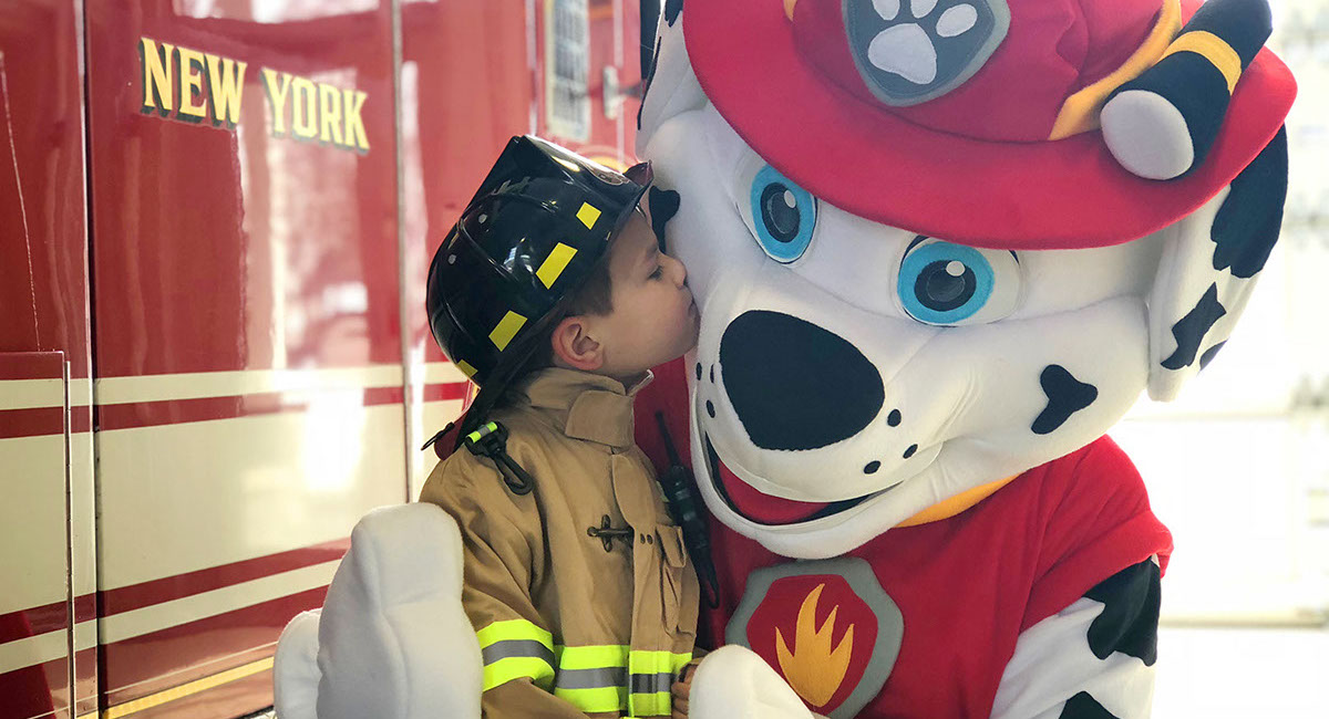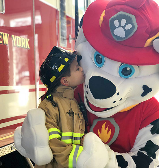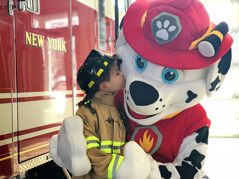 This package brings the focus in on Marshall from paw patrol! Marshall shows up in a real fire truck and has fun with the kids. Package includes all elements of the "Firefighter basics package".